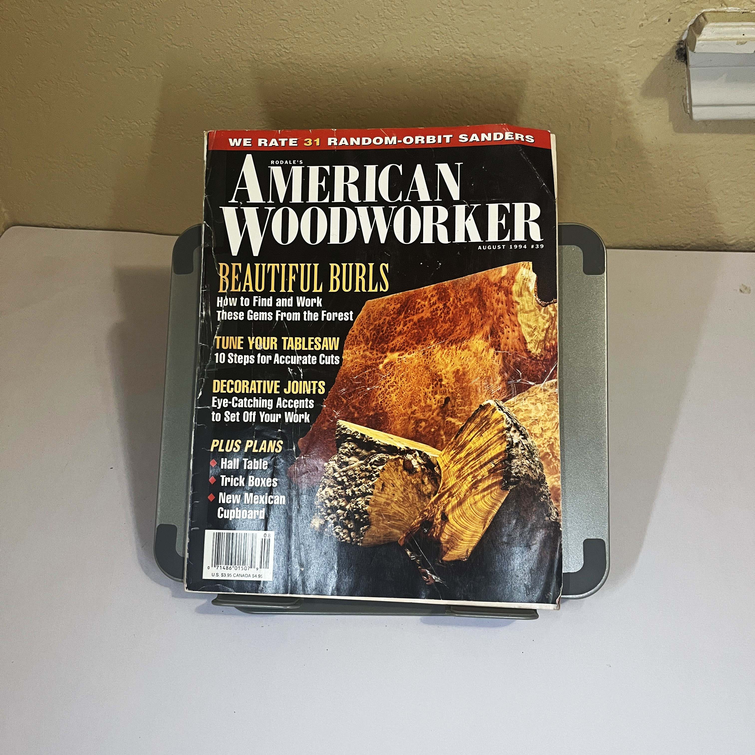 Explore the art of woodworking with this vintage August 1994 issue of American Woodworker. The 1990s saw a boom in artistic woodworking, and this issue captures that spirit with its cover feature on finding and working with beautiful burl wood. Discover the techniques to turn these 'gems from the forest' into stunning pieces. This edition also includes essential guides for tuning your tablesaw, creating decorative joints, and plans for a hall table, trick boxes, and a New Mexican cupboard.