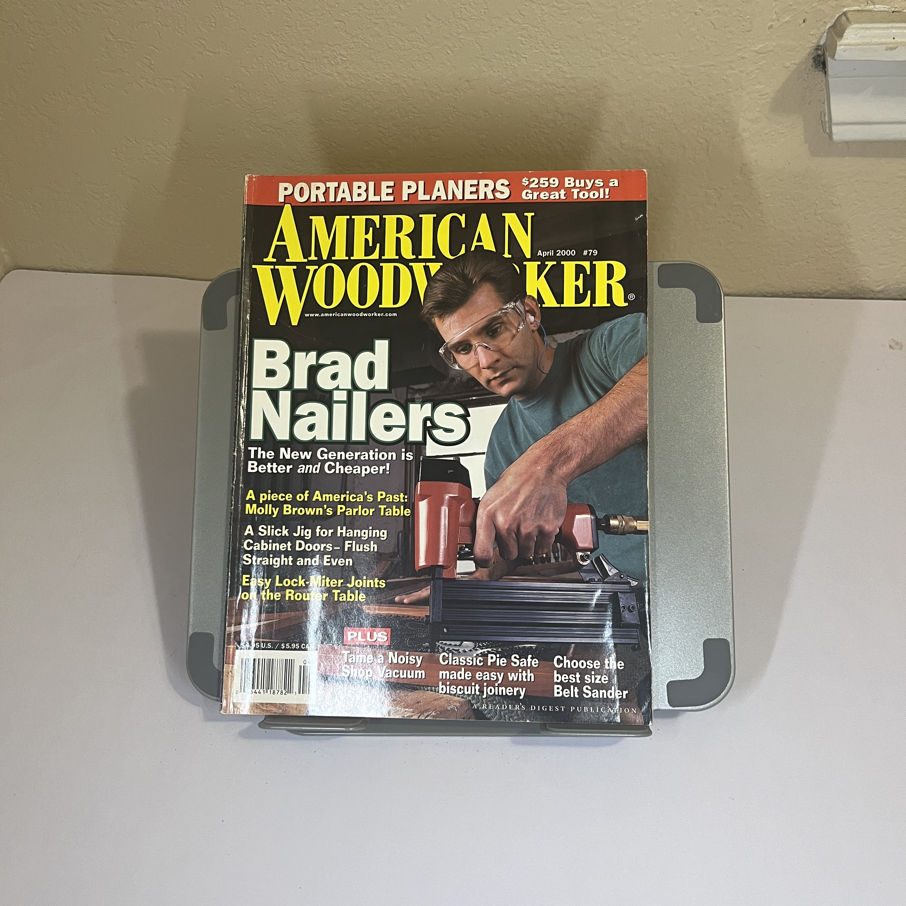 Explore the world of woodworking from the turn of the millennium with the April 2000 issue of American Woodworker. This edition features an in-depth look at the new generation of brad nailers, which were becoming more accessible and powerful for the home craftsman. The year 2000 marked a boom in DIY culture and home improvement, and this magazine captures that spirit perfectly. Discover classic projects like building a pie safe, taming a noisy shop vac, and mastering lock-miter joints on a router table.