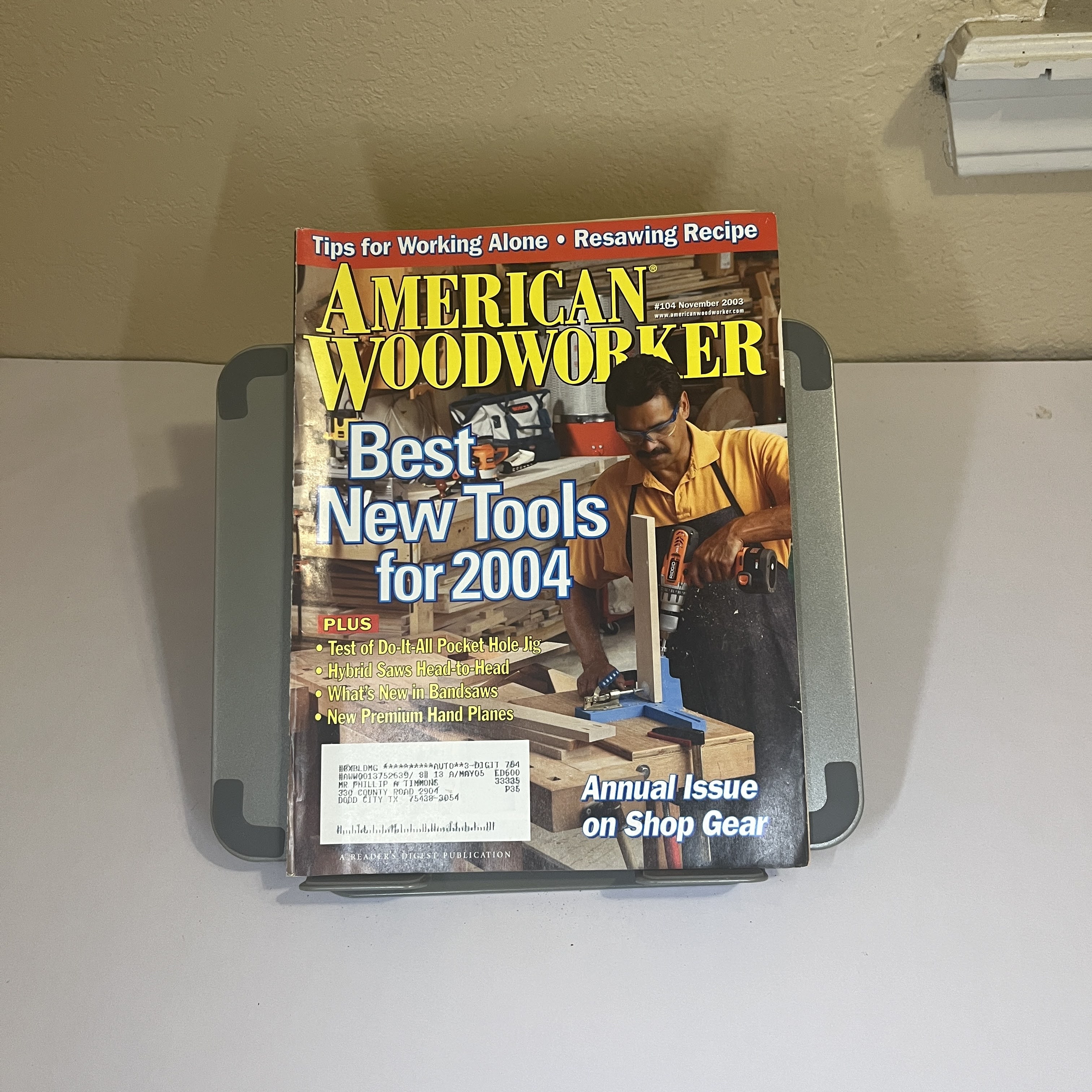 Explore the best new woodworking tools of 2004 in this November 2003 issue of American Woodworker magazine. This annual shop gear special was highly anticipated by hobbyists and professionals eager to see the latest innovations in power and hand tools. Inside, find head-to-head comparisons of hybrid saws, tests of pocket hole jigs, and what's new in bandsaws. A fantastic piece of 2000s woodworking history, this issue is a must-have for collectors and enthusiasts.