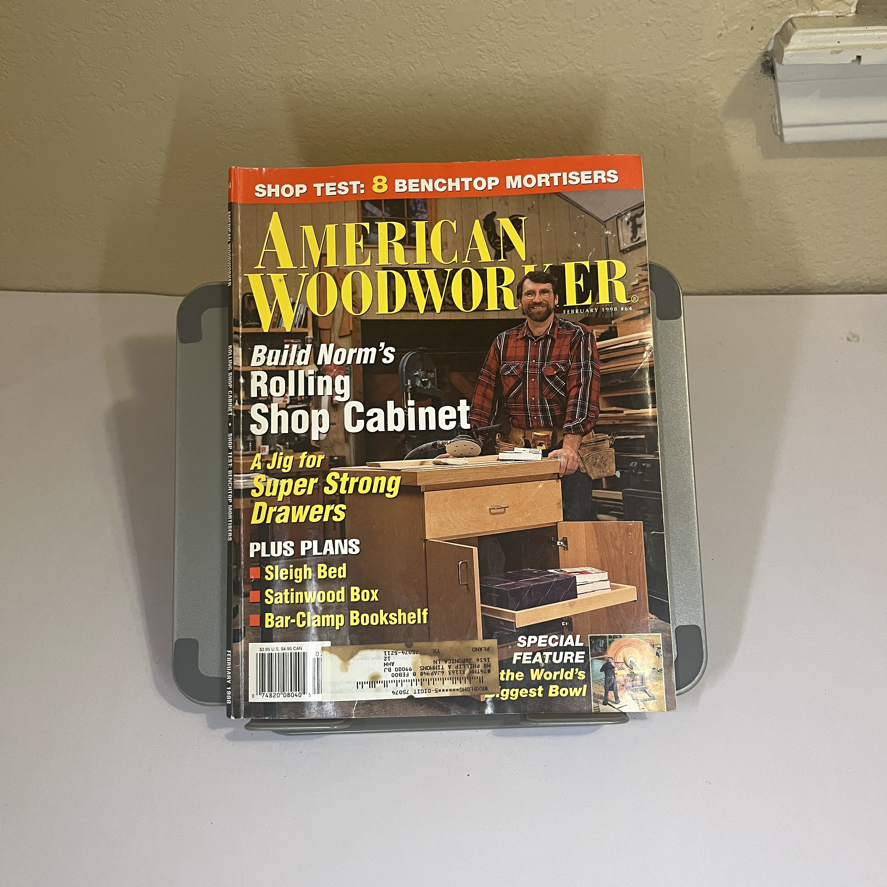 This February 1998 issue of American Woodworker features a cover project from woodworking icon Norm Abram of PBS's 'The New Yankee Workshop'. At the height of his popularity, Norm inspired a generation of hobbyists, and this issue provides plans for his classic Rolling Shop Cabinet. Inside, you'll also find plans for a sleigh bed, a satinwood box, and a bar-clamp bookshelf. This magazine is a perfect snapshot of late 90s woodworking culture and a valuable resource for project ideas.