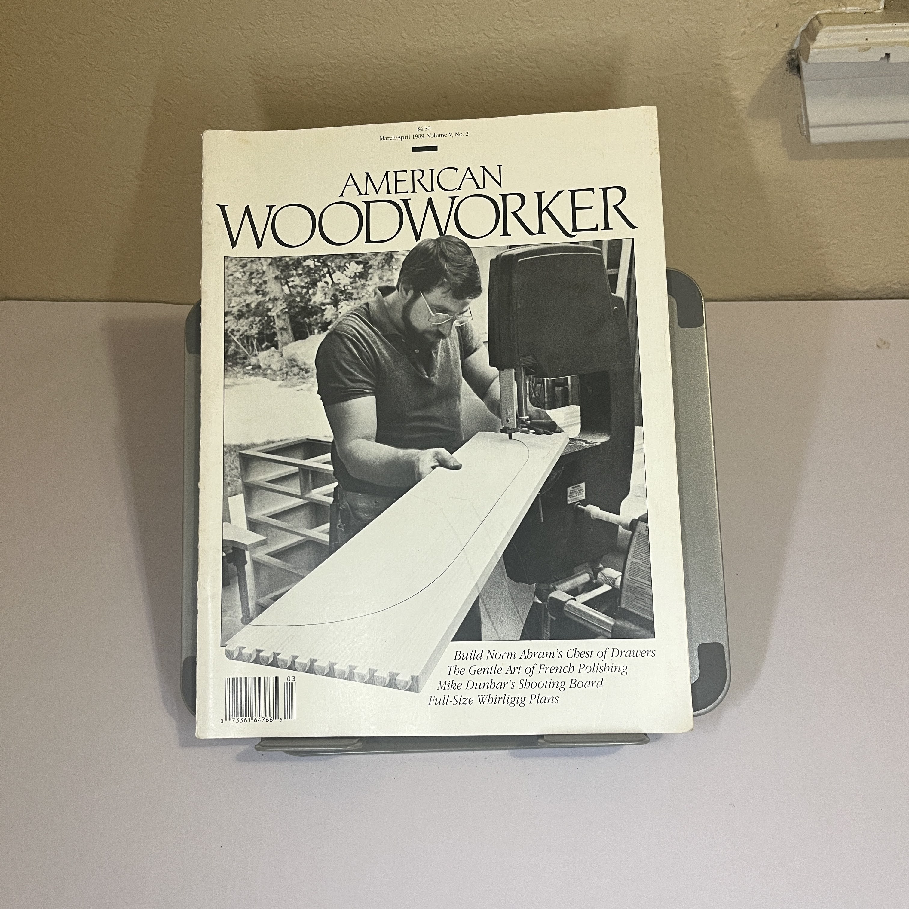 Explore the craft of woodworking with the March/April 1989 issue of American Woodworker. This edition prominently features plans to build Norm Abram's Chest of Drawers, a project from one of public television's most beloved woodworking masters. At the time, Norm Abram was a leading figure in the DIY movement, inspiring a generation of craftsmen through his accessible techniques on 'The New Yankee Workshop'. Also inside, discover the secrets of French polishing, Mike Dunbar's shooting board, and full-size whirligig plans. A fantastic piece of 1980s woodworking history and inspiration.