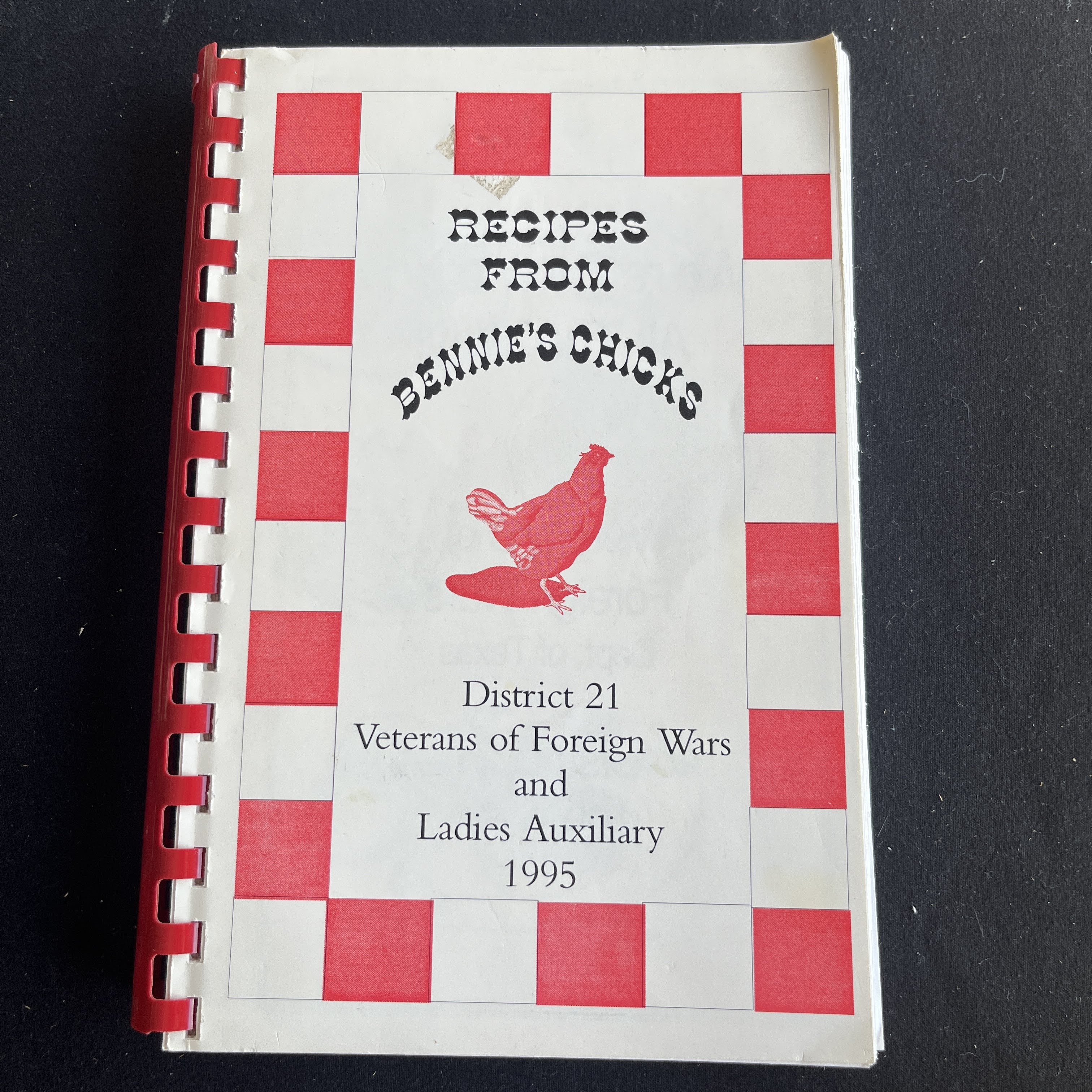 A unique piece of Texas history, this 1993-94 publication by the Veterans of Foreign Wars, District 21, is likely a community cookbook. Titled 'We're Behind You All The Way!', it serves as a cultural artifact from the organization during that period. This spiral-bound copy is in excellent, clean condition, making it a great find for collectors of military memorabilia, Texas history, or vintage community cookbooks.