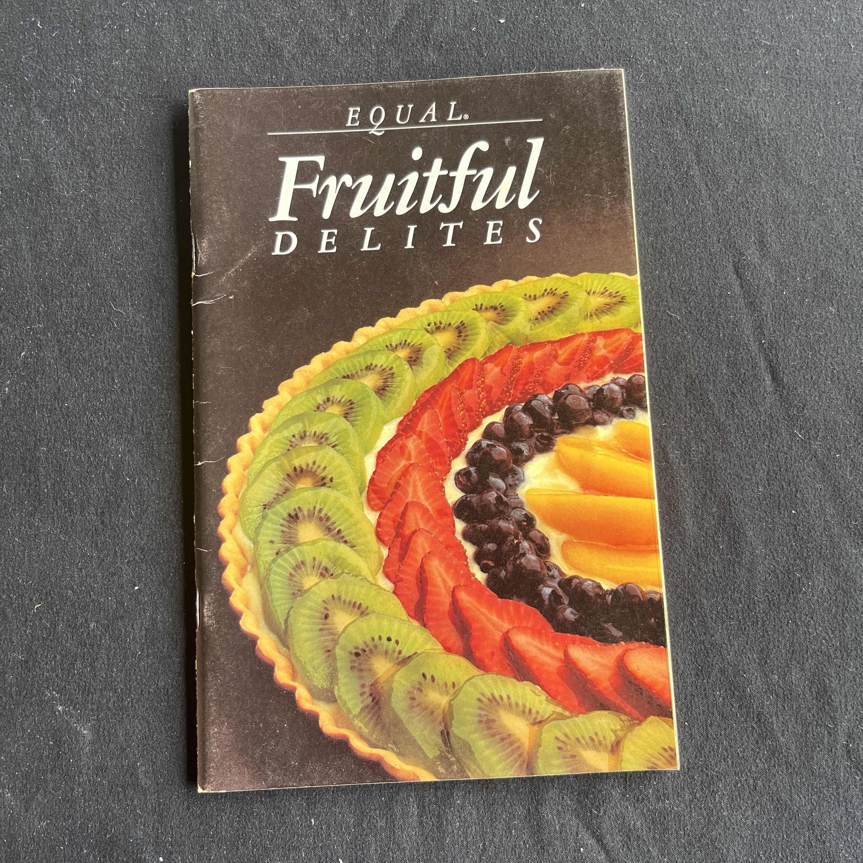 Discover a taste of 1980s health-conscious baking with 'Equal Fruitful Delites,' a vintage promotional recipe booklet. Published by the makers of Equal sweetener, this collection features recipes for desserts and sweets, capitalizing on the low-calorie trend of the era. The cover, with its classic fruit tart photography, evokes the food styling of the time. This booklet is a unique collectible for those interested in food history, branding, and the evolution of American dietary trends.