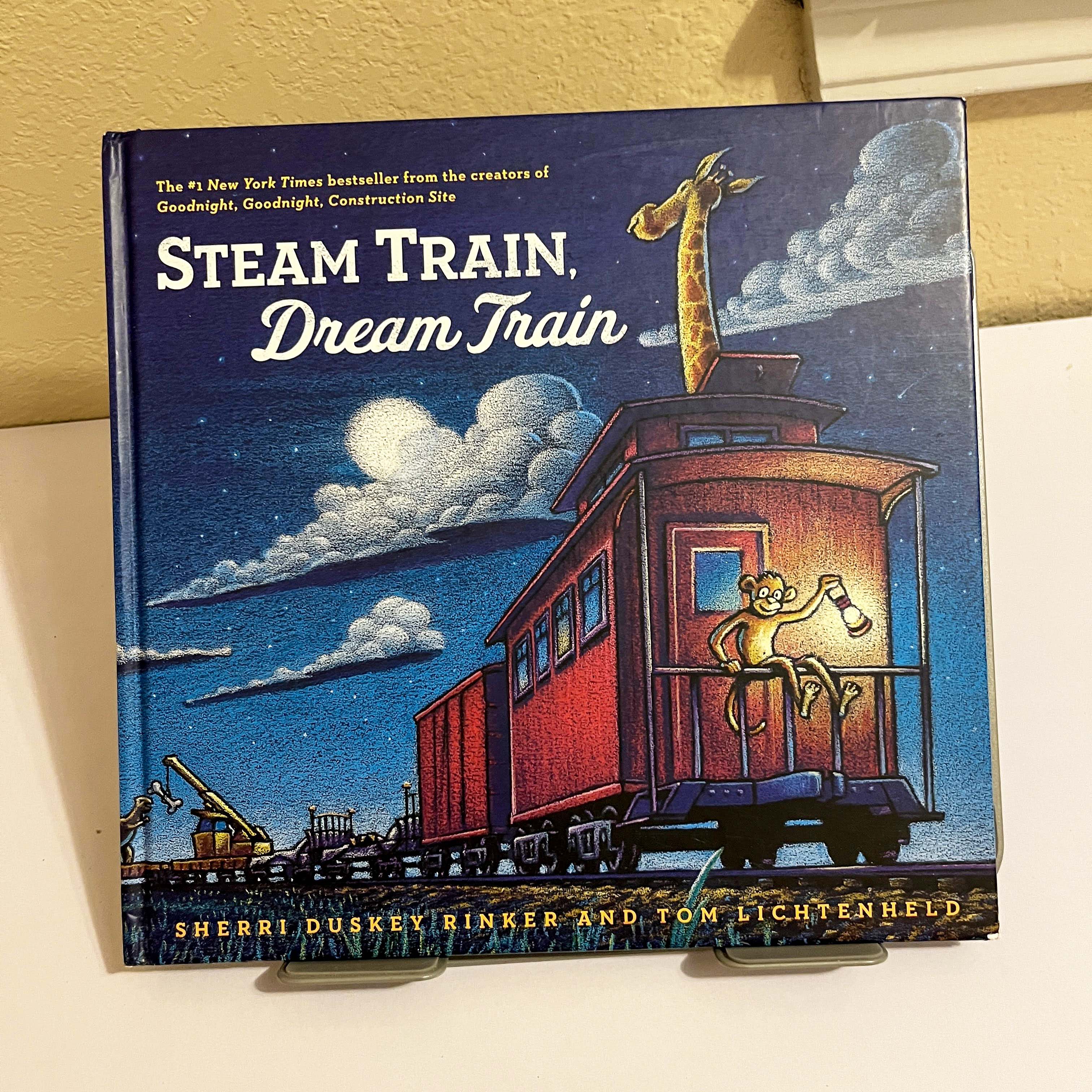 From the creators of the beloved 'Goodnight, Goodnight, Construction Site' comes 'Steam Train, Dream Train,' a #1 New York Times bestselling picture book. This hardcover edition is perfect for parents and early childhood educators seeking a captivating bedtime story that combines whimsical animals with the magic of trains. This copy is in good condition, featuring a bright, clean cover with only minor wear on the corners, making it an essential addition for any young reader's library.