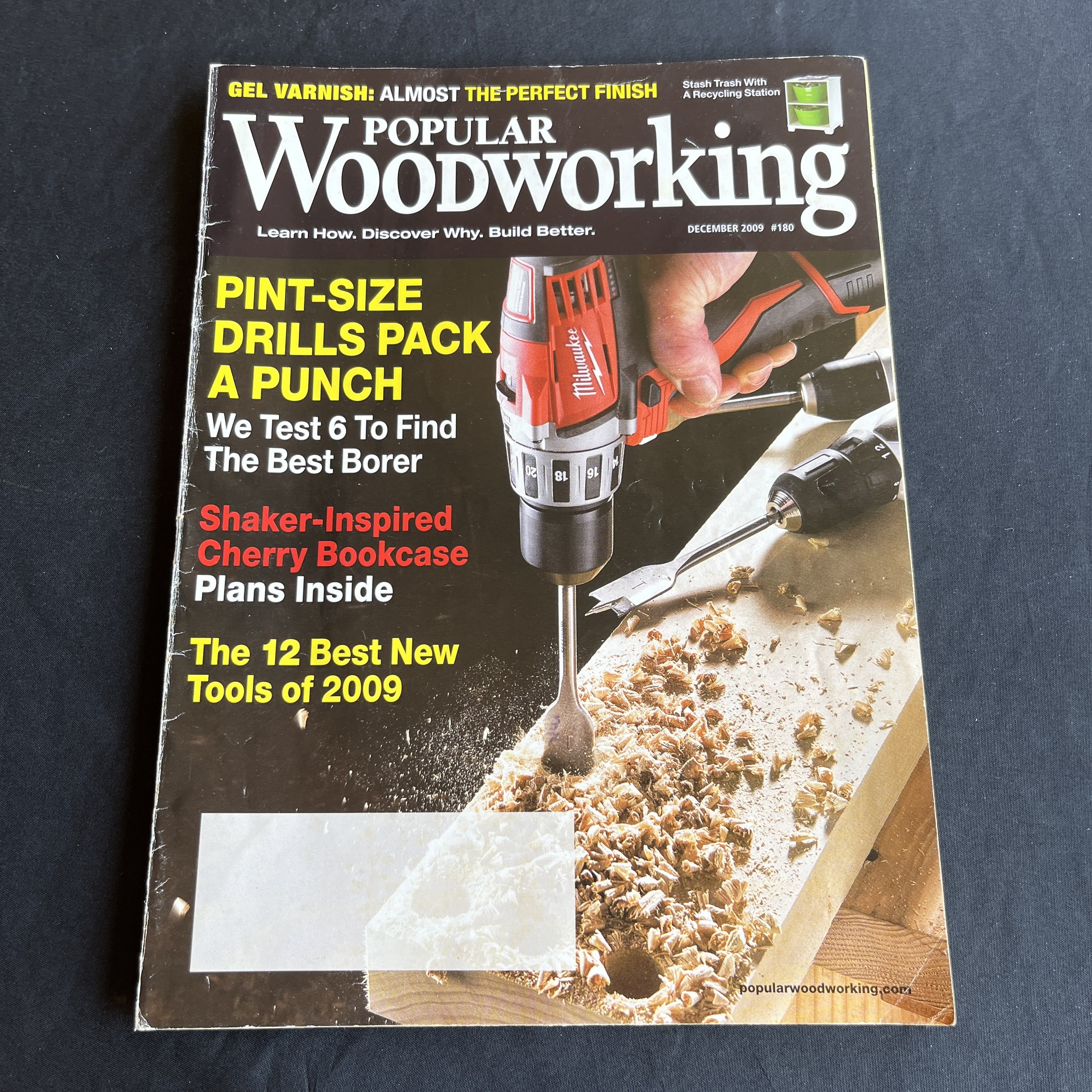 Explore the world of woodworking with the December 2009 issue of Popular Woodworking. This issue features a comprehensive review of 'pint-size' compact drills, a growing trend as battery technology improved and woodworkers sought more ergonomic tools. Inside, you'll also find plans for a classic Shaker-inspired cherry bookcase, a guide to using gel varnish, and a look at the 12 best new tools of the year. A fantastic resource for hobbyists and professionals, this issue is a great snapshot of woodworking at the end of the 2000s.