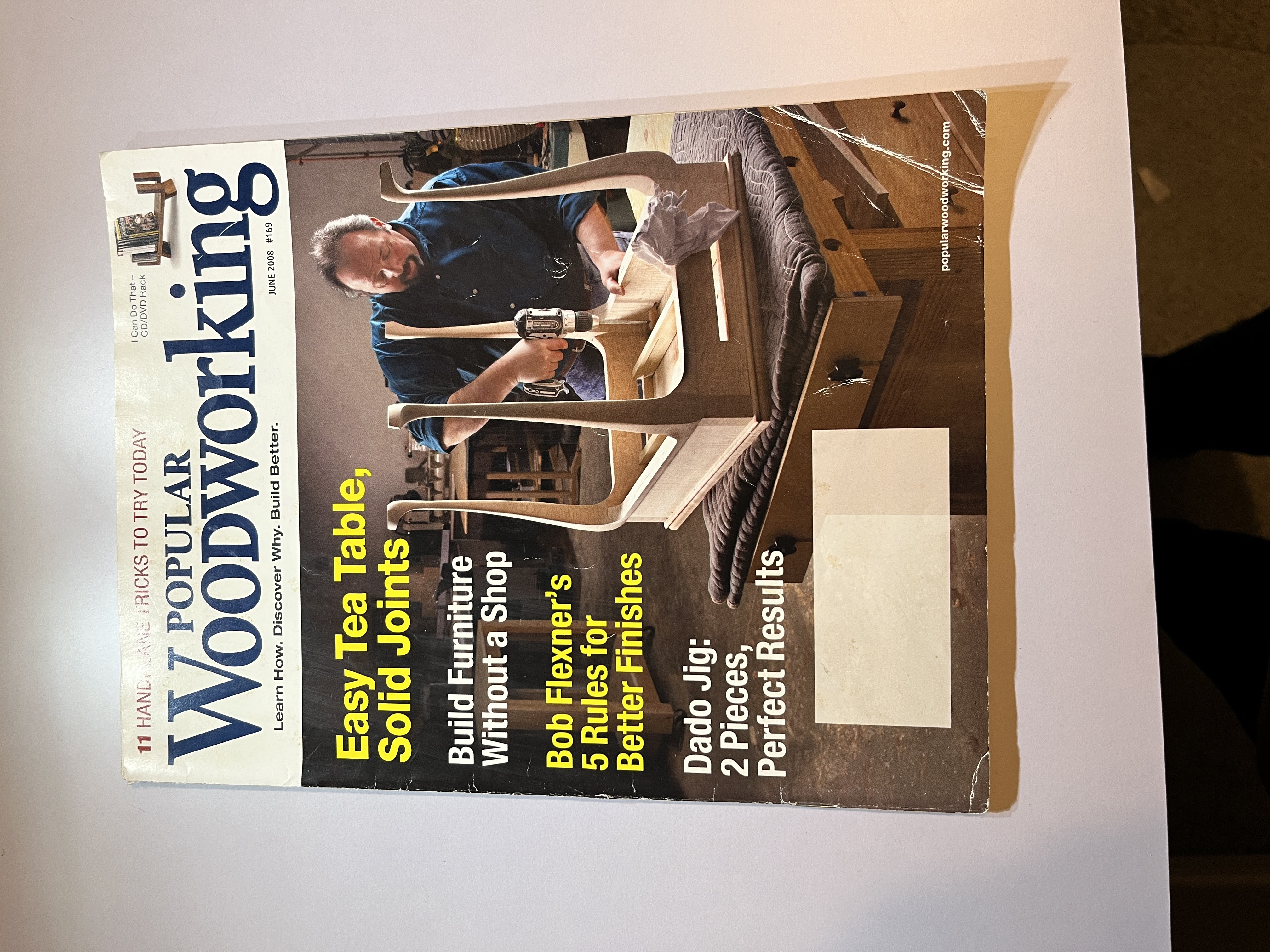 Explore the art of woodworking with the June 2008 issue of Popular Woodworking magazine. This edition features detailed plans for projects like an elegant tea table and a practical CD/DVD rack. Renowned expert Bob Flexner shares his five essential rules for achieving better finishes, a must-read for any craftsman. Also included are valuable tips for building furniture without a dedicated shop and instructions for a perfect-result dado jig, making this a fantastic resource for hobbyists and seasoned woodworkers alike.