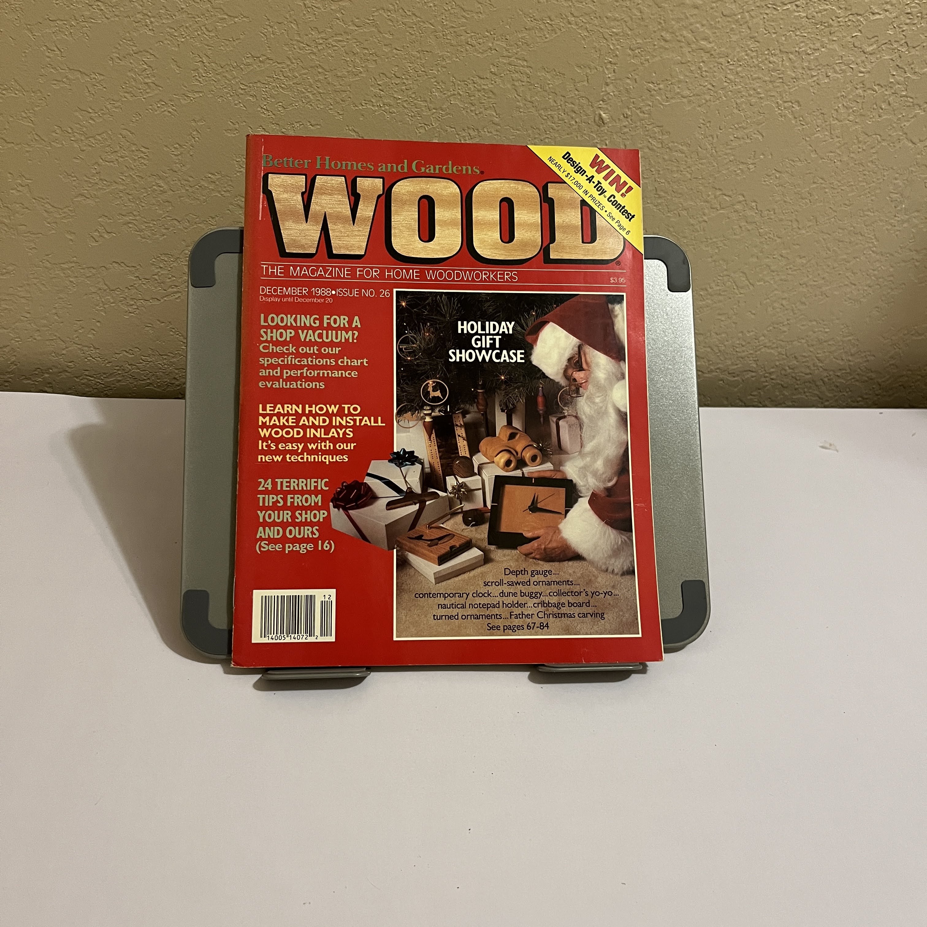 Step back to Christmas 1988 with this vintage issue of WOOD magazine, 'The Magazine for Home Woodworkers.' This edition features a festive 'Holiday Gift Showcase,' perfect for crafting handmade treasures. The late 80s celebrated a return to traditional skills, and this magazine embodies that with projects like a carved Father Christmas, scroll-sawed ornaments, and a contemporary clock. A fantastic piece of 1980s woodworking history, this issue also provides a detailed guide on shop vacuums and techniques for wood inlays.