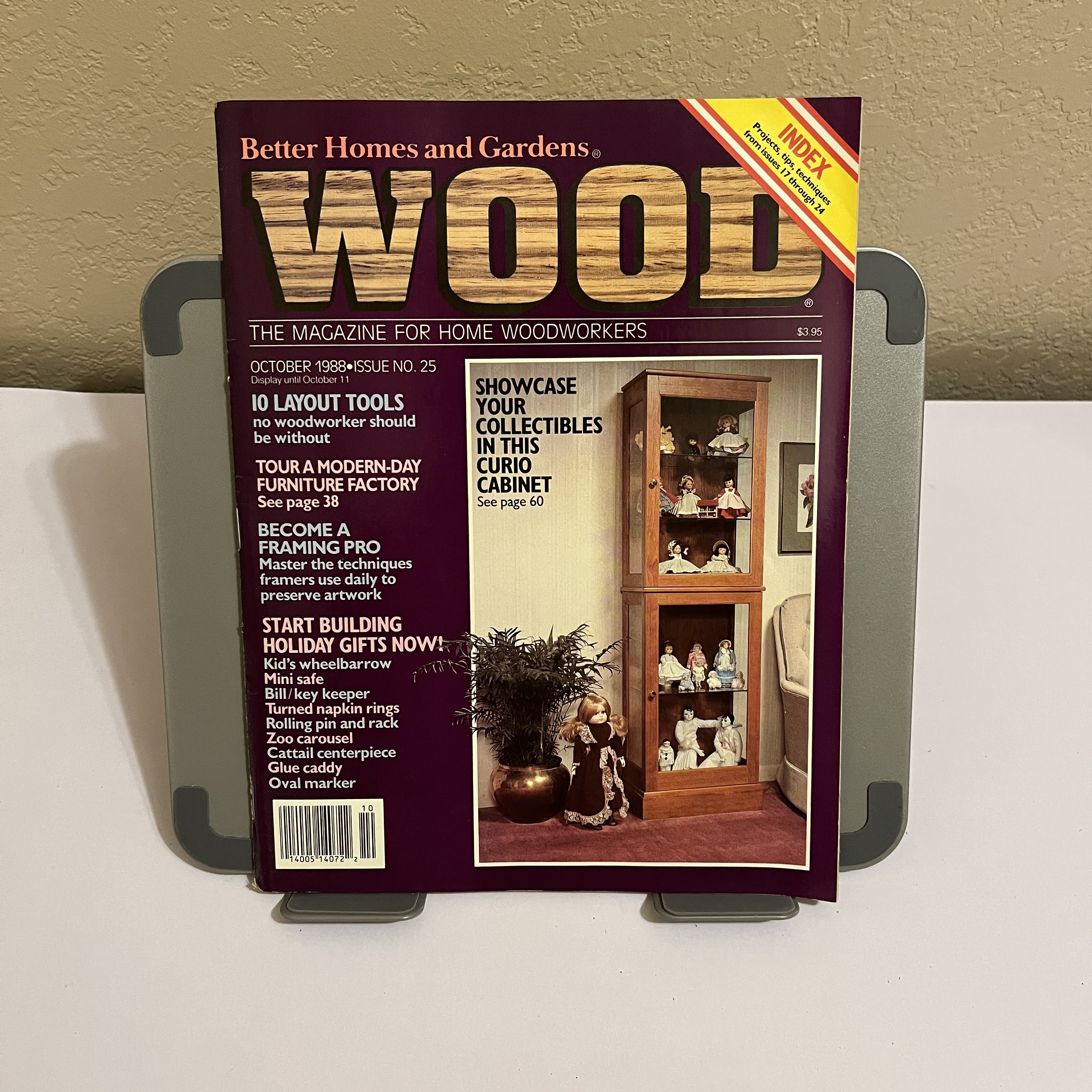 The late 1980s saw a strong resurgence in traditional home decor and displaying personal collections. This October 1988 issue of Better Homes and Gardens' WOOD magazine taps directly into that trend, featuring a classic curio cabinet project on the cover. Inside, find detailed plans for this showcase piece, alongside other projects perfect for the era's DIY enthusiast, like holiday gifts and framing techniques. This collectible issue is a fantastic snapshot of late 80s woodworking and home life.