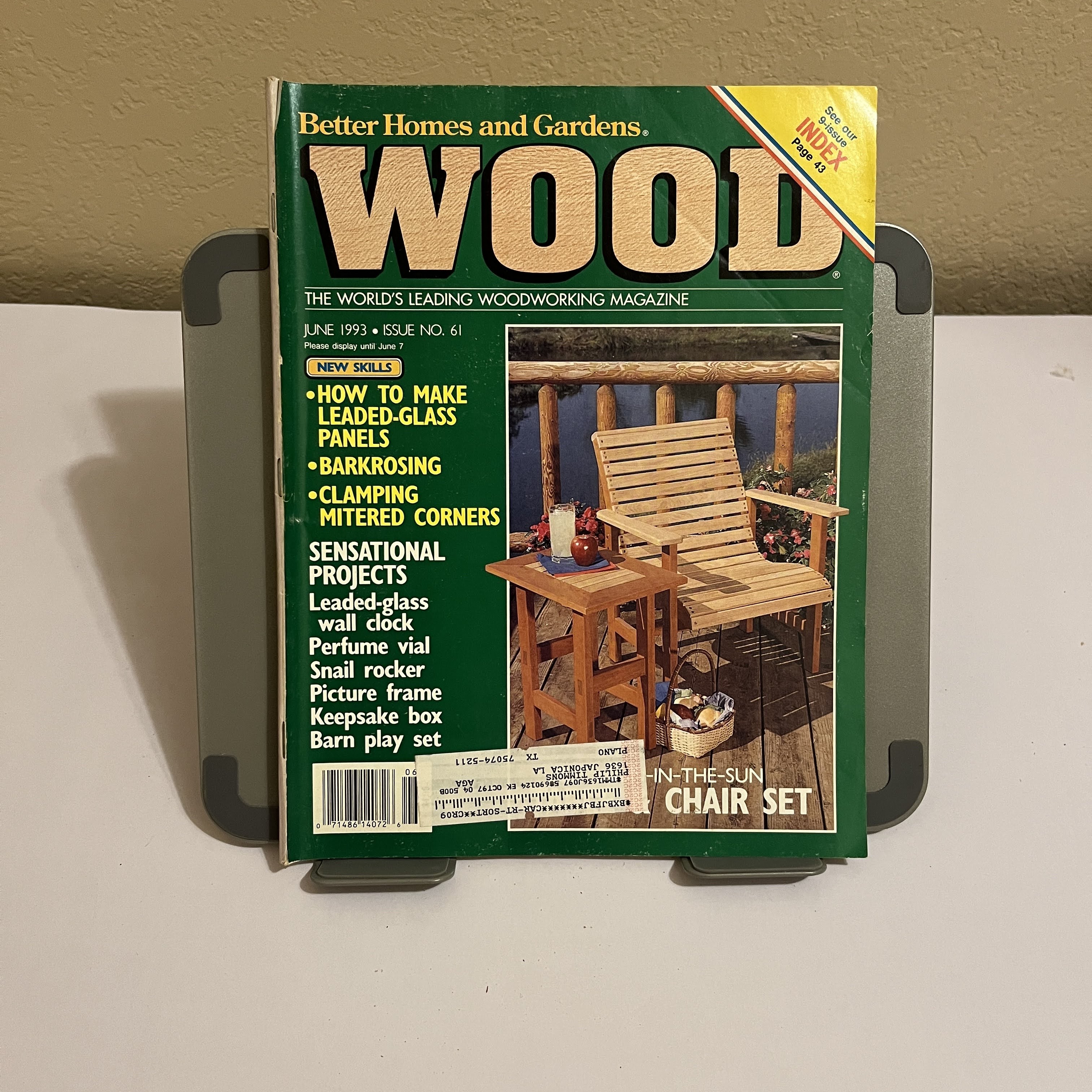 Explore classic woodworking with the June 1993 issue of Better Homes and Gardens' WOOD magazine. This vintage issue features detailed plans for the cover project: a beautiful 'In-the-Sun' outdoor chair and table set. In the early 1990s, DIY home and garden projects were at peak popularity, and this issue reflects that trend with timeless designs for functional, handcrafted furniture. Inside, discover a variety of other sensational projects, including a leaded-glass wall clock, a snail rocker, and techniques like barkrosing.