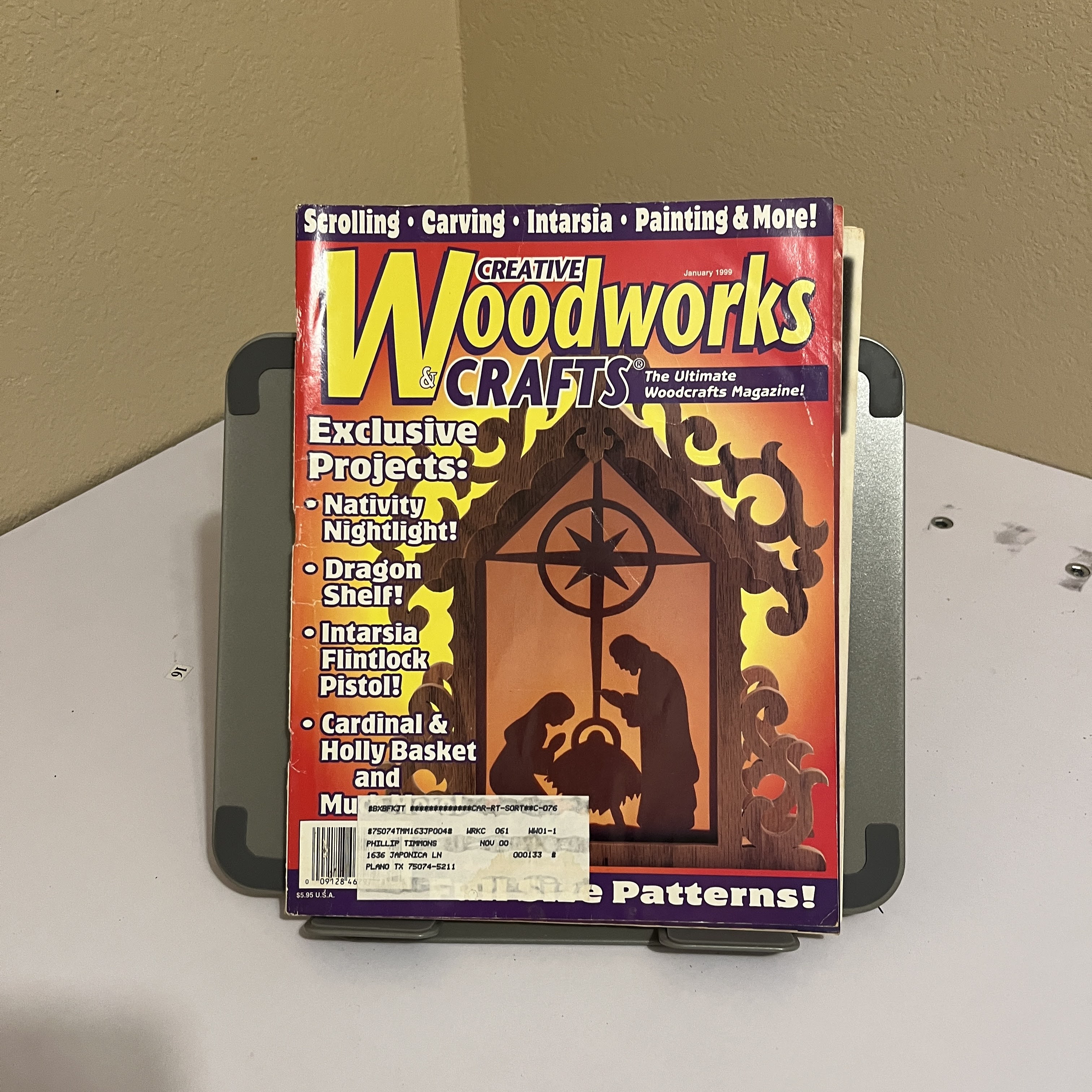 Explore the world of woodworking with the January 1999 issue of Creative Woodworks & Crafts. The cover highlights a beautiful Nativity Nightlight project, tapping into the enduring tradition of creating handmade holiday decor. This issue provided woodworkers at the end of the 90s with detailed patterns and inspiration. Inside, find more exclusive projects like a Dragon Shelf, an Intarsia Flintlock Pistol, and a Cardinal & Holly Basket, reflecting the diverse interests of the crafting community.