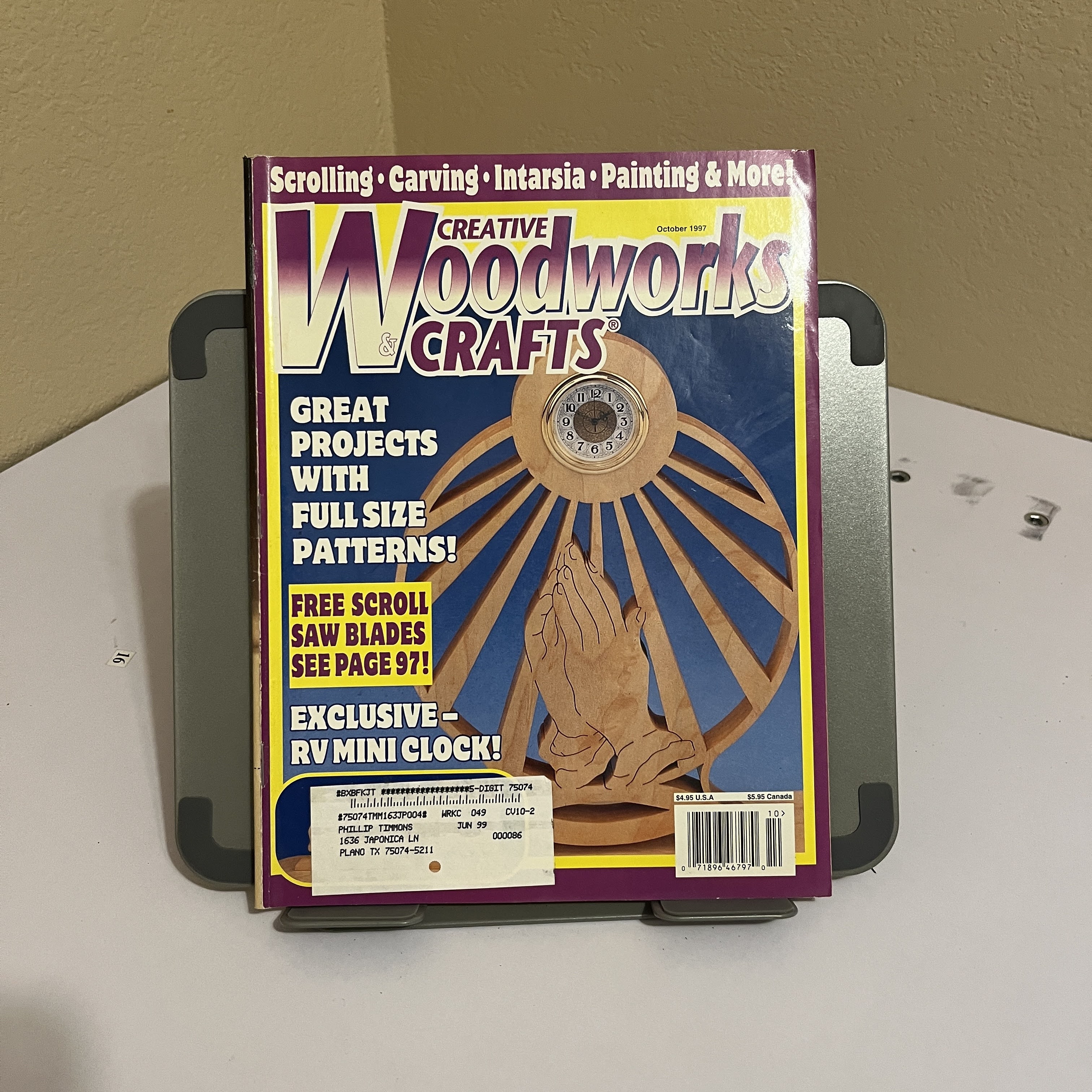 Discover a piece of 1990s DIY culture with this October 1997 issue of Creative Woodworks & Crafts. The cover highlights a stunning praying hands clock project, a popular motif reflecting the era's appreciation for traditional and faith-based folk art. This period saw a significant boom in home crafting, and this magazine was at the forefront, providing hobbyists with accessible plans. Inside, find full-size patterns, techniques for scrolling, carving, and intarsia, perfect for collectors or modern-day woodworkers.