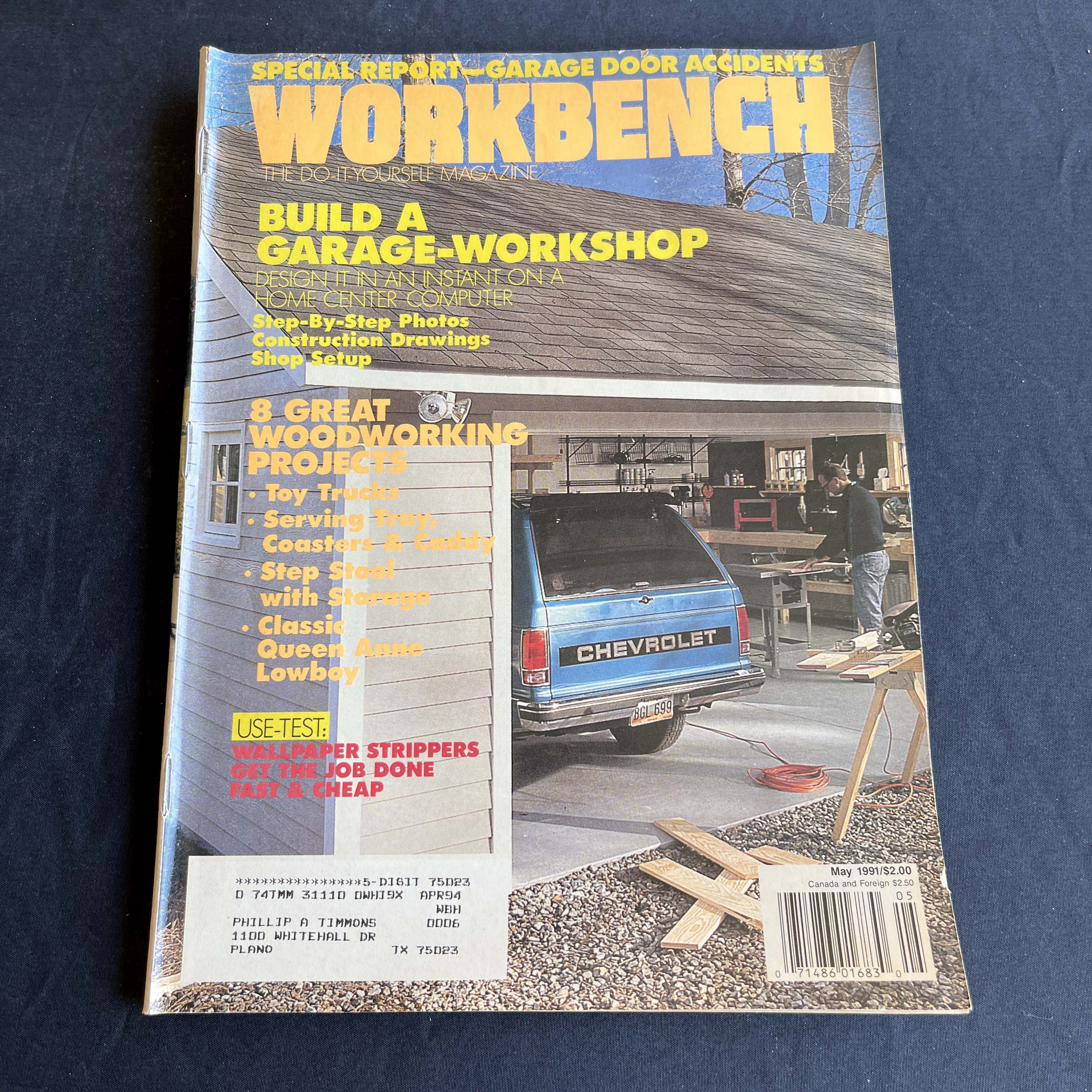 Dive into classic 90s DIY with the May 1991 issue of Workbench Magazine. This edition features a comprehensive guide to building your own garage-workshop, even detailing how to design it using a home center computer—a fascinating glimpse into early consumer tech for home improvement. Additionally, discover plans for 8 great woodworking projects, from a classic Queen Anne lowboy to a toy truck, plus a special report on garage door safety.