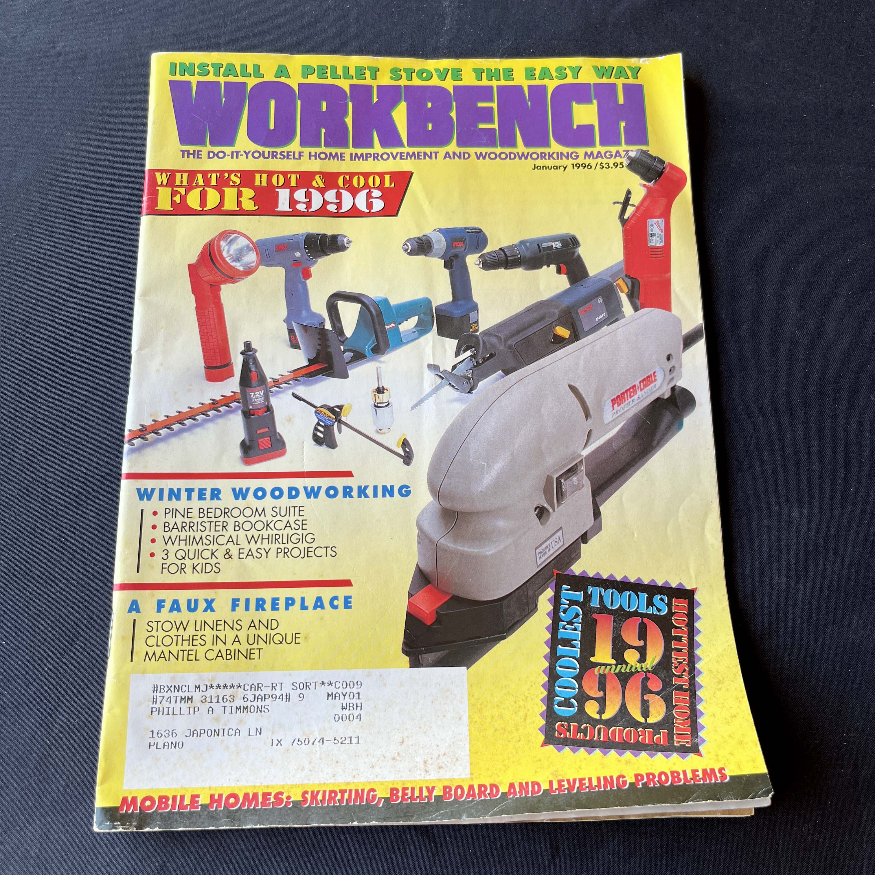 Explore the best of mid-90s craftsmanship with this January 1996 issue of Workbench Magazine. The cover story features a guide to the 'Coolest Tools for 1996,' showcasing the burgeoning market for cordless and specialized power tools that were transforming home workshops. Inside, find detailed plans for winter woodworking projects like a pine bedroom suite and a barrister bookcase, plus practical advice on installing a pellet stove. A perfect piece of nostalgia for any DIY enthusiast, woodworker, or collector of 1990s memorabilia.