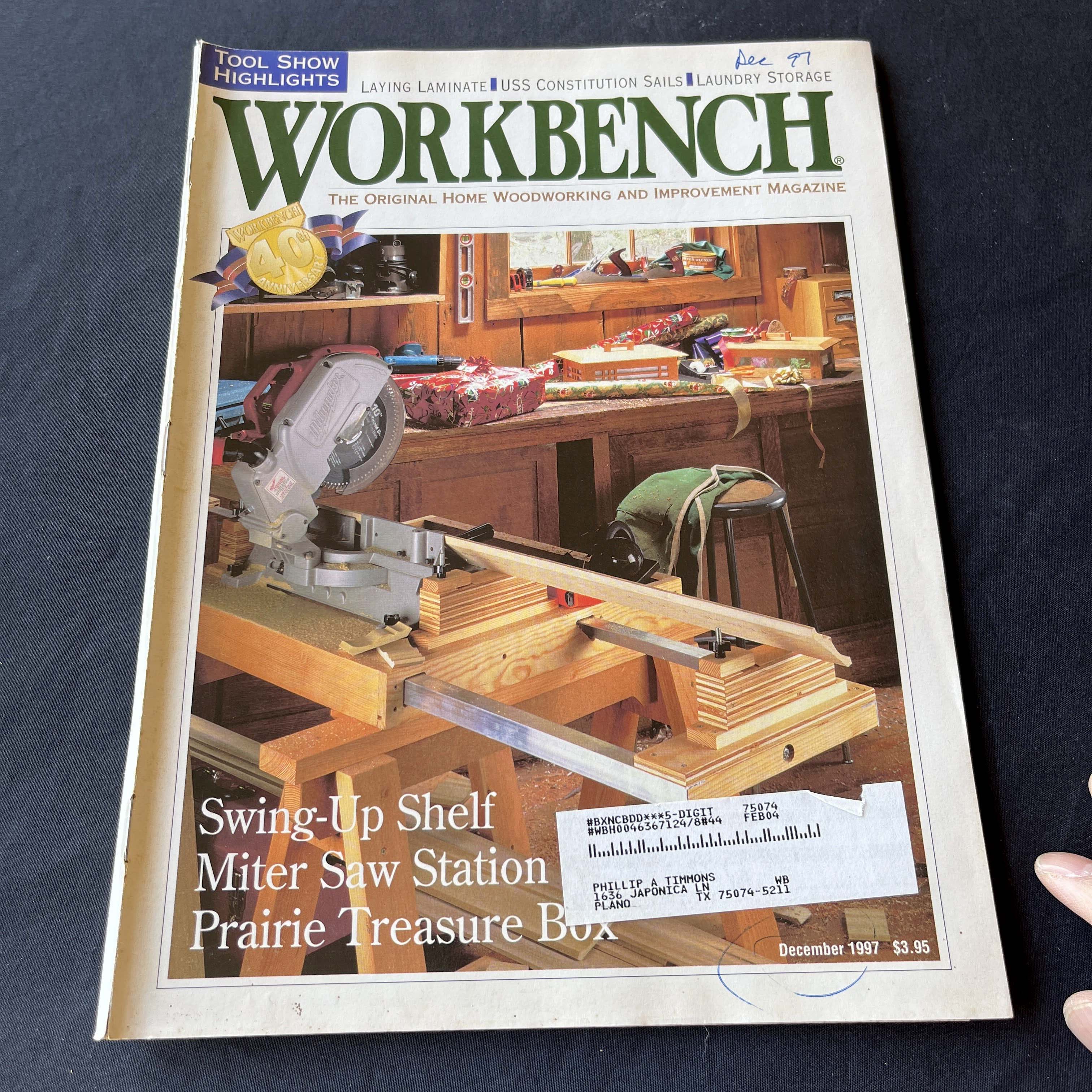 The late 1990s saw a continuation of the strong DIY and home woodworking movement. Magazines like Workbench were essential resources for hobbyists, providing detailed plans and techniques before the widespread availability of online tutorials. This December 1997 issue features a practical 'Swing-Up Shelf Miter Saw Station,' a perfect project for optimizing workshop space. Also included are plans for a 'Prairie Treasure Box,' making this a fantastic snapshot of late 20th-century home improvement culture.
